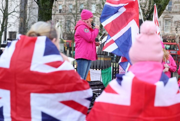 Members of the English group known as the Pink Ladies gathered in Belfast on Saturday for an all-female rally opposing immigration. The event took place outside Belfast City Hall, where participants expressed their views against immigration policies, coinciding with a separate Rally for Iran happening in the city at the same time.