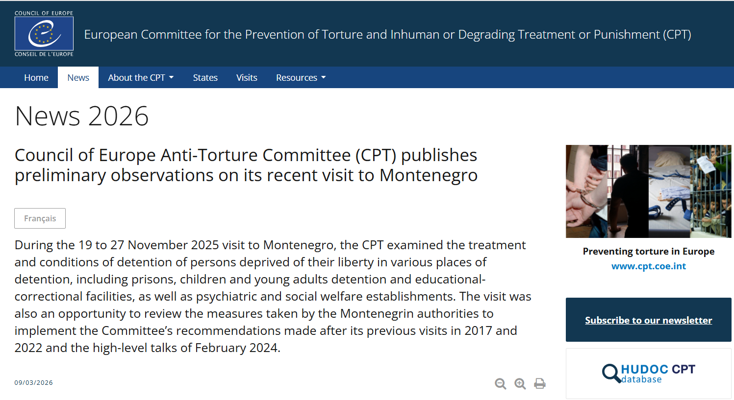 The Montenegrin authorities responded to the CPT’s inquiries in a letter dated January 22, 2026, but the full report detailing the findings from November 2025 will not be released to the government until July 2026. The preliminary observations and the government’s response were published with the consent of Montenegrin officials.